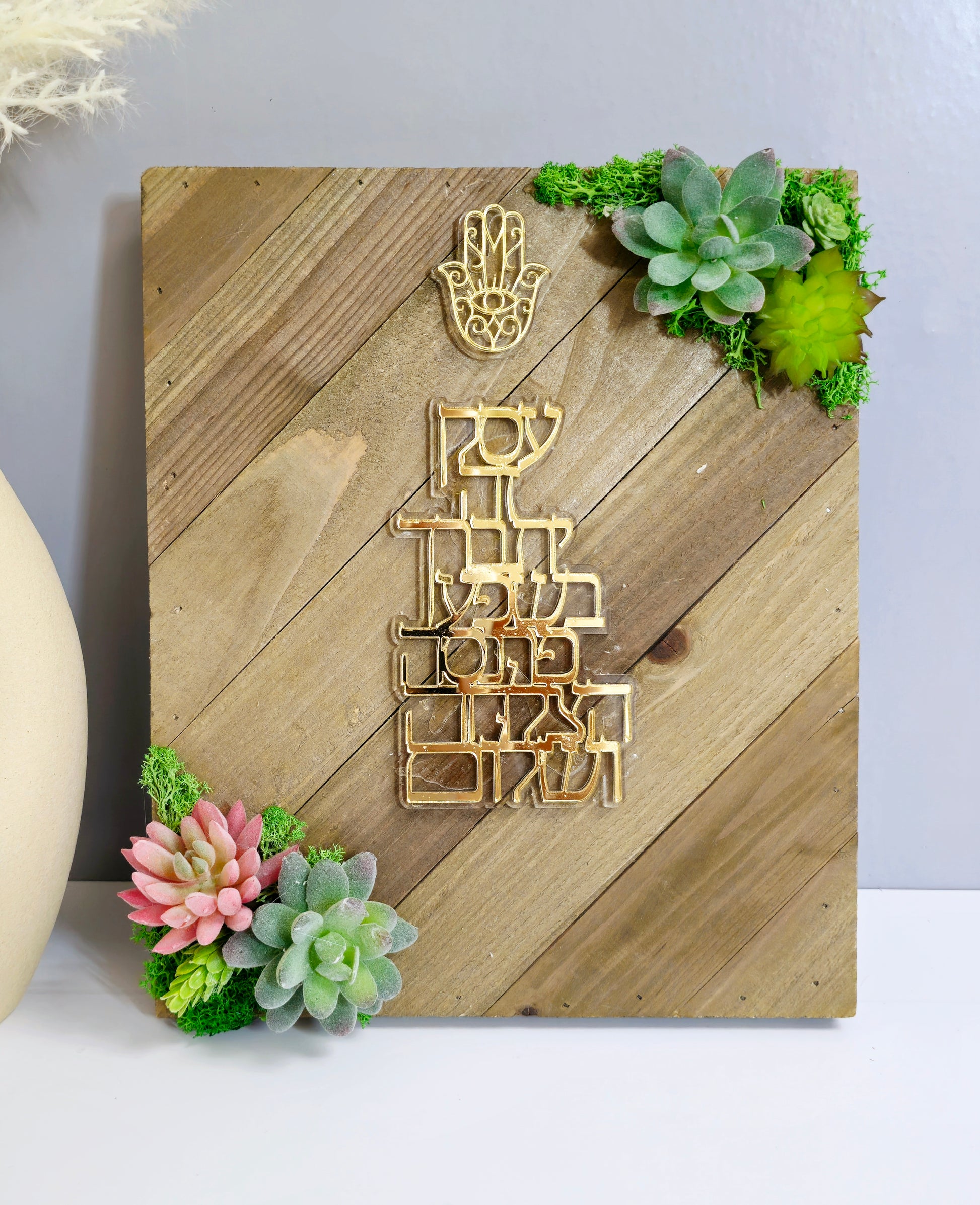 - Acrylic Blessing: The blessing text is crafted from high-quality acrylic, giving it a sleek, modern finish that contrasts beautifully with the wooden background.